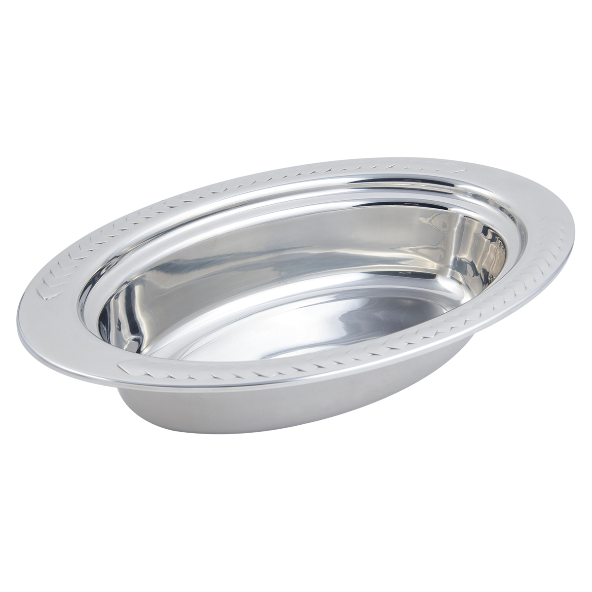 Constructed of heavy gauge, high-polished stainless steel, these pieces can travel straight from the oven to table to steam table. Customize any Hot Solutions item by choosing a stylish patterned border or decorative handle.