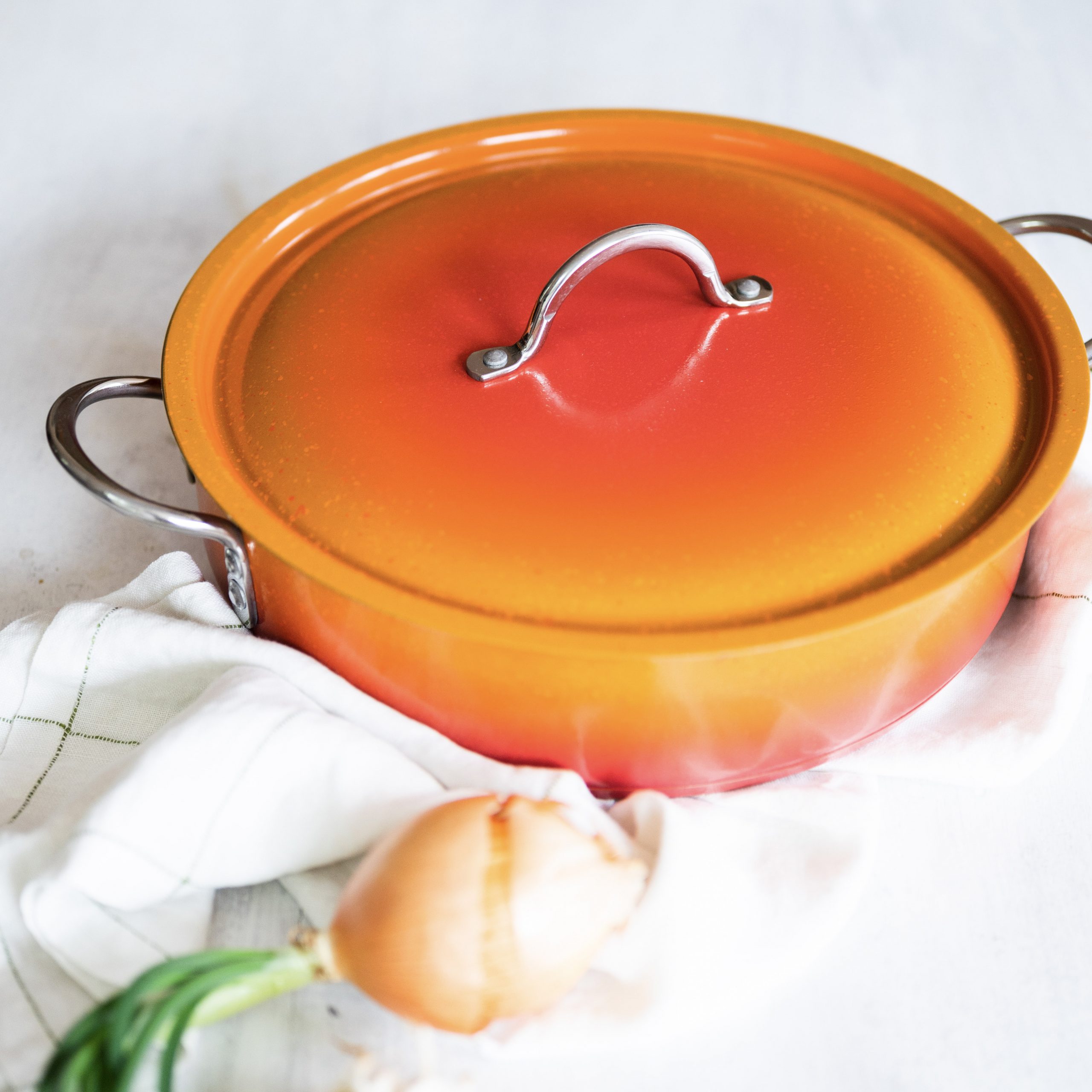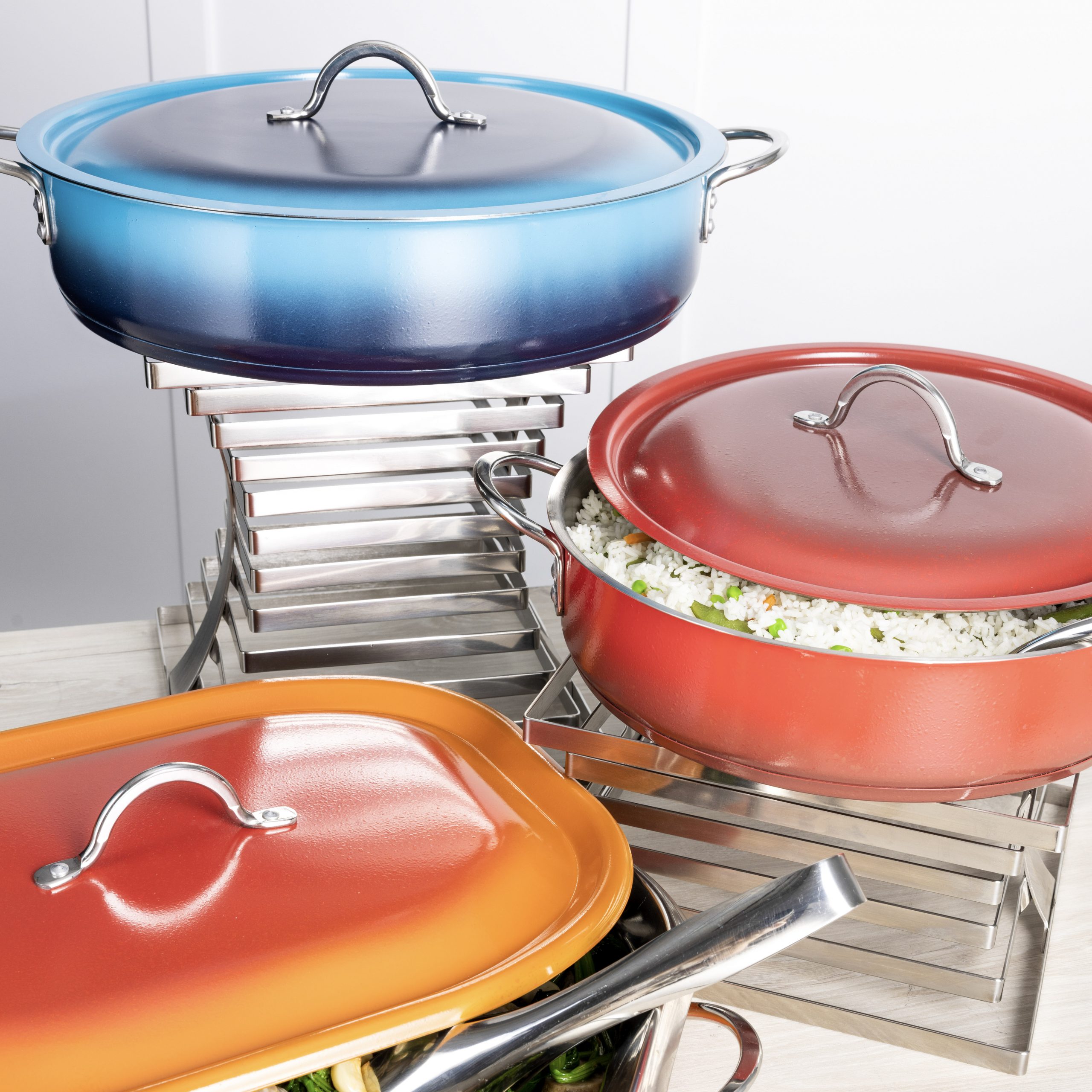 The Cucina Original Finish Collection is offered in a variety of sizes. Offers a residential feel with pieces that also perform as a chafer, with a full steam bath. Food pan inserts are available for many sizes. Most Original Cucina Pots & Pans are induction ready and all will work with radiant heat, steam table or canned fuel.
